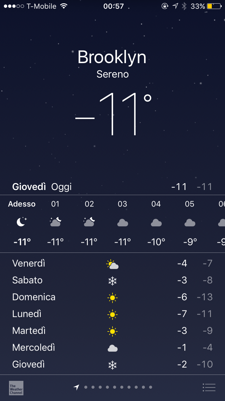 Ecco, in queste righe che avete letto ci saranno 3 giornate delle 40 che sono passate: purtroppo qua c’è tanto tempo per pensare, perchè il lavoro al momento sta scarseggiando e le cose sono un po’ lente a muoversi. Tanta gente mi dice che devo smetterla di rompere, che mi lamento sempre, ma purtroppo io non è che abbia finanze solide da poter dire che posso aspettare con calma e nel frattempo godermi la vita! New York in particolare è una città costosissima, e in più adesso sta arrivando una leggera brezza dal Polo Nord, che farà scendere le temperature sotto i meno 10 gradi; insomma, passo tanto tempo a casa, e purtroppo pensare è uno degli sport preferiti dal mio cervello.
