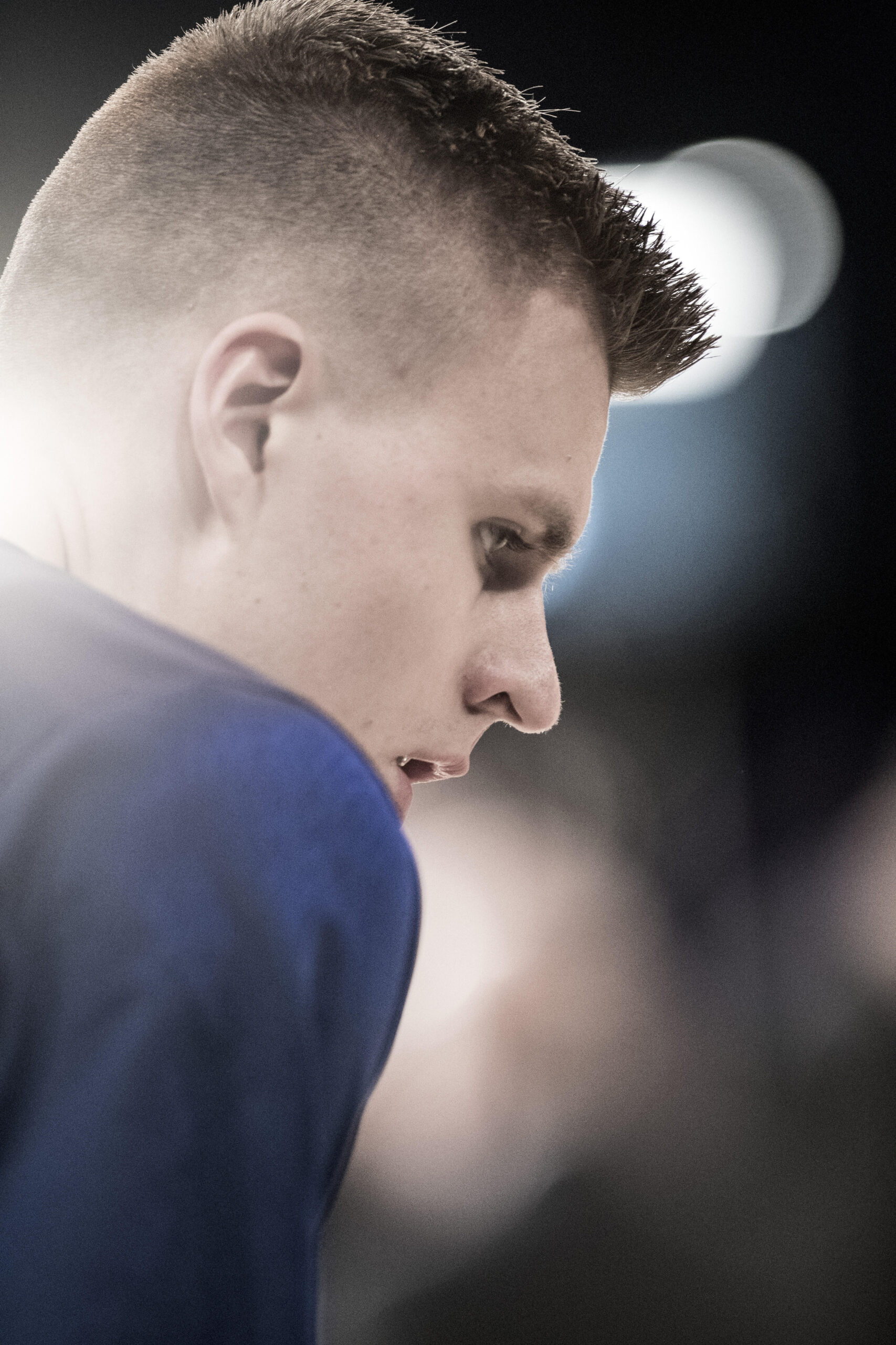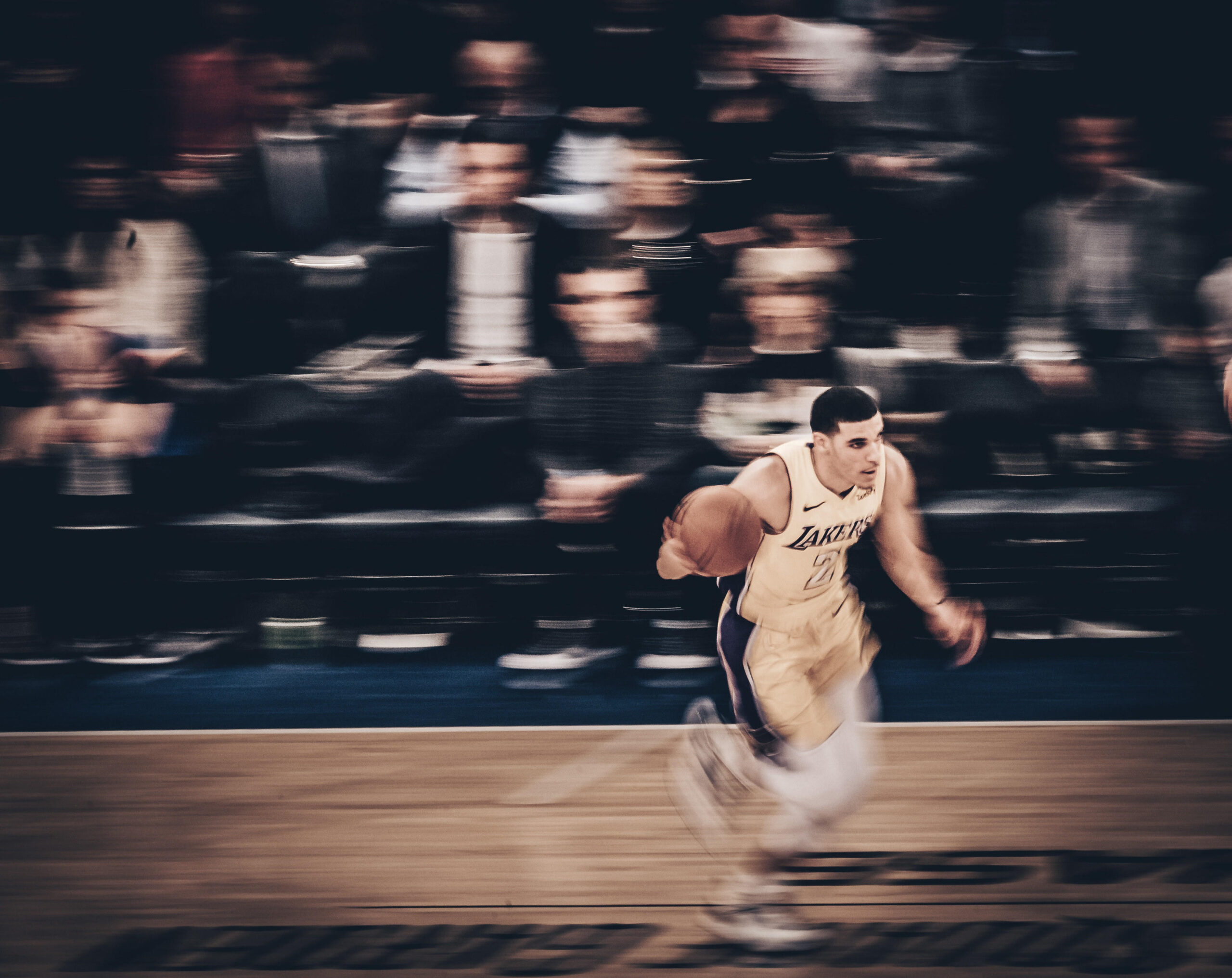 Ri-controllata l’attrezzatura (grazie a Dio non mi ero scordato niente), ho cominciato a fare i miei soliti ritratti pregame in particolare a Simmons e a Embiid, per poi dirigermi definitivamente verso la mia posizione, che era in alto. La cosa particolare di questo lavoro per la NBA era che io non editavo le mie foto: infatti un cavo internet entrava direttamente nella mia Nikon, e le immagini finivano direttamente sul desk di Secaucus, New Jersey, dove gli editors provvedevano a distribuirle in giro.